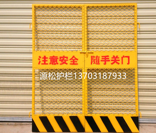 河北安平源松護欄網廠生產批發電梯井口防護門、施工電梯安全門、電梯井樓層防護門,升降機樓層門,黃藍色電梯井口防護門、斜方鋼板,沖孔單開雙開電梯井口防護門。13703187933