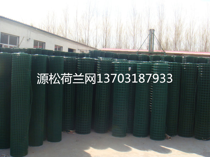 養殖浸塑荷蘭網(養殖浸塑電焊網),卷狀、有些客戶不知道表面是浸塑處理的、把這種浸塑荷蘭網又稱為塑料網、每卷30米、比網片的普通護欄、雙邊、框架的價格低、而且安裝方便、是近兩年來新興的一種特別適合養殖行業的鐵絲網圍欄、現在已成星火燎原之勢。